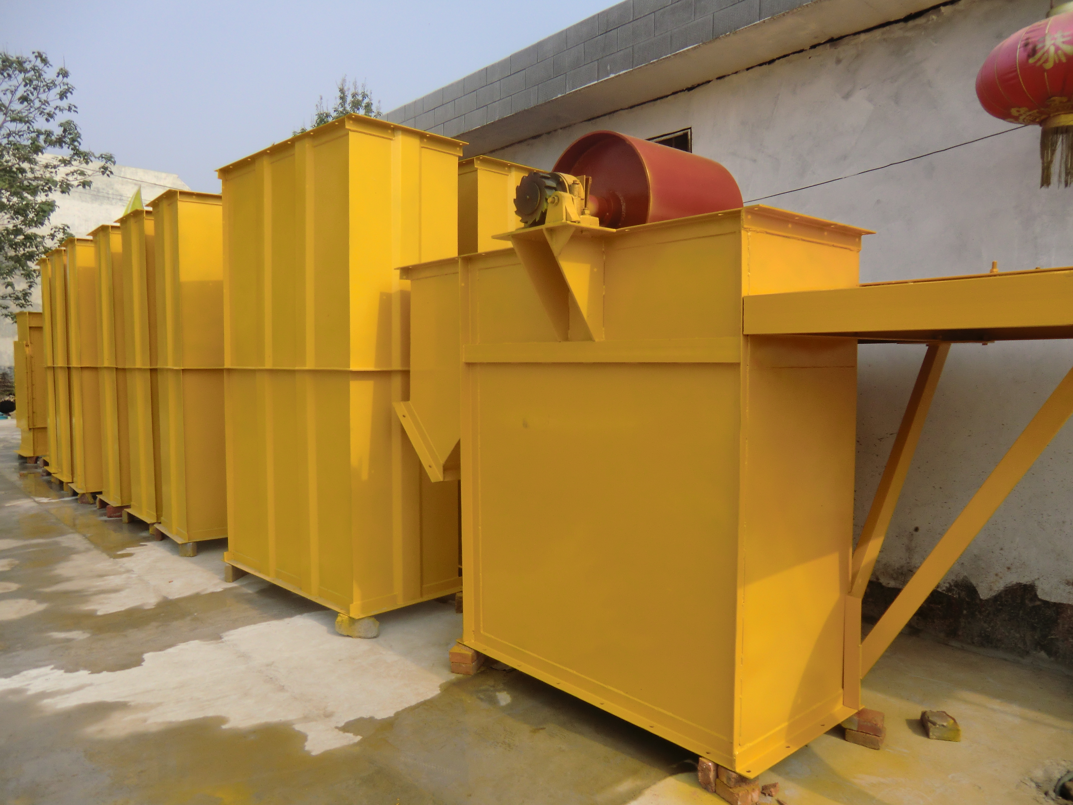產(chǎn)品描述: 斗式提升機(jī)是利用均勻固接于無(wú)端牽引構(gòu)件上的一系列料斗,豎向提升物料的連續(xù)輸送機(jī)械,斗式提升機(jī)利用一系列固接在牽引鏈或膠帶上的料斗在豎直或接近豎直方向內(nèi)向上運(yùn)送散料 。分為環(huán)鏈、板鏈和皮帶三種?! 《肥教嵘龣C(jī)適用于低處往高處提升,供應(yīng)物料通過(guò)振動(dòng)臺(tái)投入料斗后機(jī)器自動(dòng)連續(xù)運(yùn)轉(zhuǎn)向上運(yùn)送。根據(jù)傳送量可調(diào)節(jié)傳送速度,并隨需選擇提升高度,料斗為自行設(shè)計(jì)制造,PP無(wú)毒料斗使該型斗式提升機(jī)使用更加廣泛,所有尺寸均按照實(shí)際需要設(shè)計(jì)制造,為配套立式包裝機(jī),電腦計(jì)量機(jī)設(shè)計(jì),適用于食品、醫(yī)藥、化學(xué)工業(yè)品、螺絲、螺帽等產(chǎn)品的提升上料,可通過(guò)包裝機(jī)的信號(hào)識(shí)別來(lái)控制機(jī)器的自動(dòng)停啟?! 」ぷ髟怼 ×隙钒盐锪蠌南旅娴膬?chǔ)藏中舀起,隨著輸送帶或鏈提升到頂部,繞過(guò)頂輪后向下翻轉(zhuǎn), 斗式提升機(jī)將物料傾入接受槽內(nèi)。帶傳動(dòng)的斗式提升機(jī)的傳動(dòng)帶一般采用橡膠帶,裝在下或上面的傳動(dòng)滾筒和上下面的改向滾筒上。鏈傳動(dòng)的斗式提升機(jī)一般裝有兩條平行的傳動(dòng)鏈,上或下面有一對(duì)傳動(dòng)鏈輪,下或上面是一對(duì)改向鏈輪。斗式提升機(jī)一般都裝有機(jī)殼,以防止斗式提升機(jī)中粉塵飛揚(yáng)?! 《肥教嵘龣C(jī):適用于低處往高處提升,供應(yīng)物料通過(guò)振動(dòng)臺(tái)投入料斗后機(jī)器自動(dòng)連續(xù)運(yùn)轉(zhuǎn)向上運(yùn)送?! ≈饕攸c(diǎn) 斗式提升機(jī)是一種垂直升運(yùn)物料的輸送設(shè)備,它具有結(jié)構(gòu)簡(jiǎn)單、維護(hù)成本低、輸送效率高、升運(yùn)高度高、運(yùn)行穩(wěn)定、應(yīng)用范圍廣等優(yōu)點(diǎn) [2] ?! 。?)驅(qū)動(dòng)功率小,采用流入式喂料、誘導(dǎo)式卸料、大容量的料斗密集型布置,在物料提升時(shí)幾乎無(wú)回料和挖料現(xiàn)象,因此無(wú)效功率少?! 。?)提升范圍廣,這類提升機(jī)對(duì)物料的種類、特性要求少,不但能提升一般粉狀、小顆粒狀物料,而且可提升磨琢性較大的物料,密封性好,環(huán)境污染少?! 。?)運(yùn)行可靠性好,**的設(shè)計(jì)原理和加工方法,保證了整機(jī)運(yùn)行的可靠性,無(wú)故障時(shí)間超過(guò)2萬(wàn)小時(shí)。提升高度高.提升機(jī)運(yùn)行平穩(wěn),因此可達(dá)到較高的提升高度?! 。?)使用壽命長(zhǎng),提升機(jī)的喂料采取流入式,無(wú)需用斗挖料,材料之間很少發(fā)生擠壓和碰撞現(xiàn)象。本機(jī)在設(shè)計(jì)時(shí)保證物料在喂料、卸料時(shí)少有撒落,減少了機(jī)械磨損。